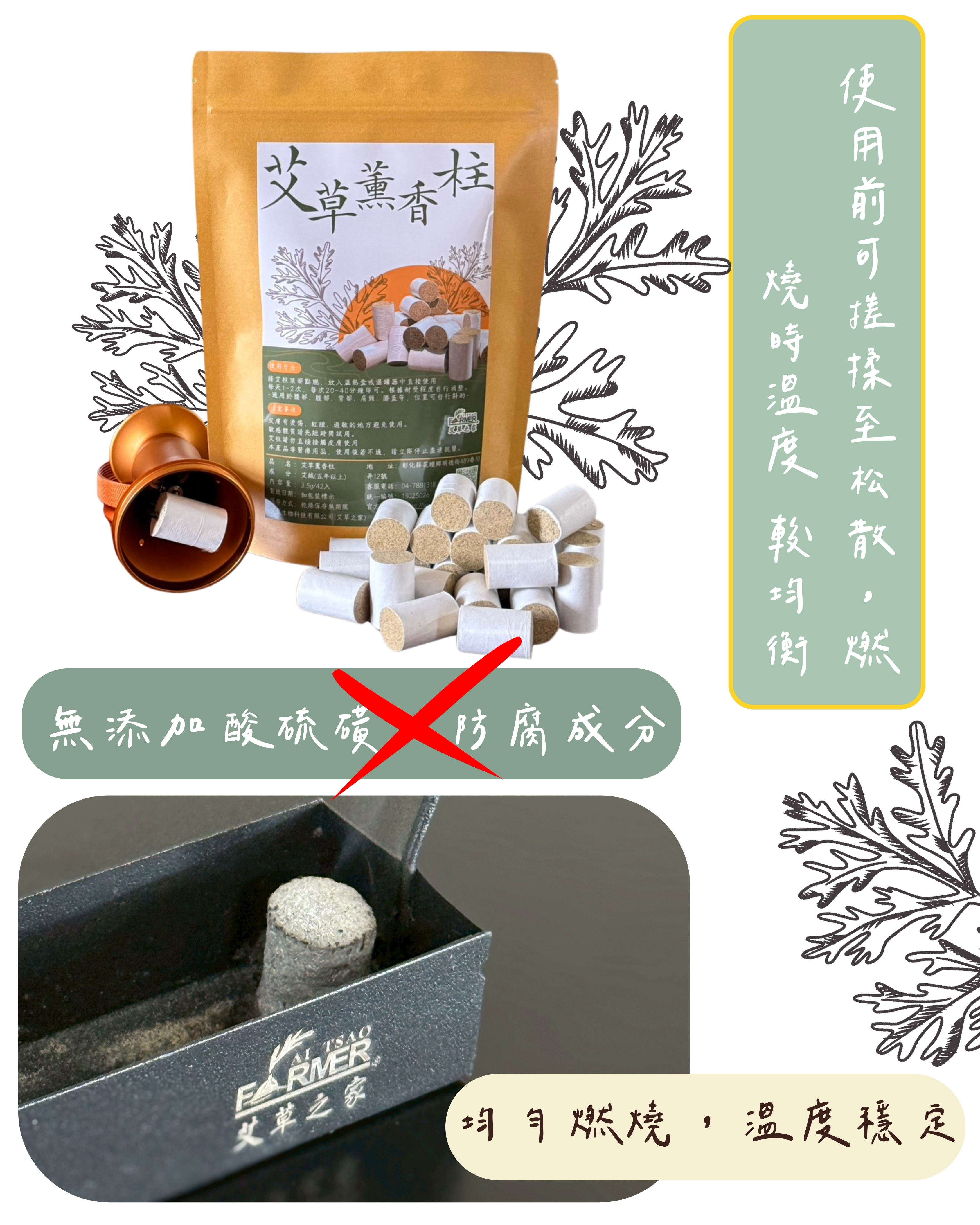 • 選用中國九尖蘄艾